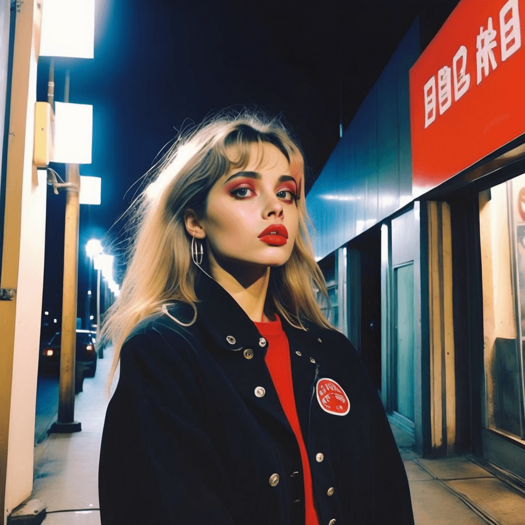 a realistic photograph, girl standing in a factory street alley in new york, sewing machines and the industrial era, synthwave art style, soviet samizdat, cold war era, drawn lines, ( asaf hanuka ), gta artstyle, hyper detailed, street wear, early 1978, Khrushchev, kennedy and the bay of pigs, samizdat passed through the streets, somewhere behind the wall.