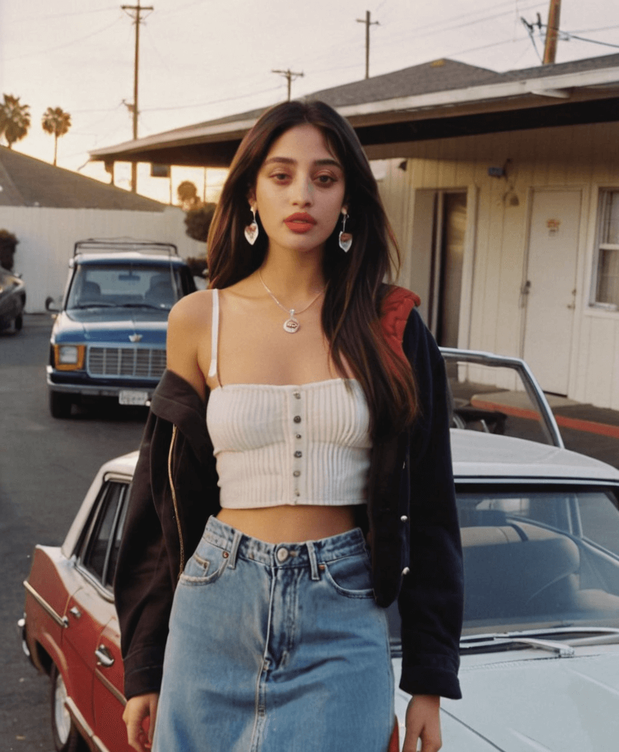 Cierre frontal con botones, algodón acanalado elástico, tirantes finos, torso estilizado, chaqueta con cremallera en capas, corte ligeramente sobredimensionado, elegante línea A, textura de mezclilla. Haciendo café, luego de vuelta al código.