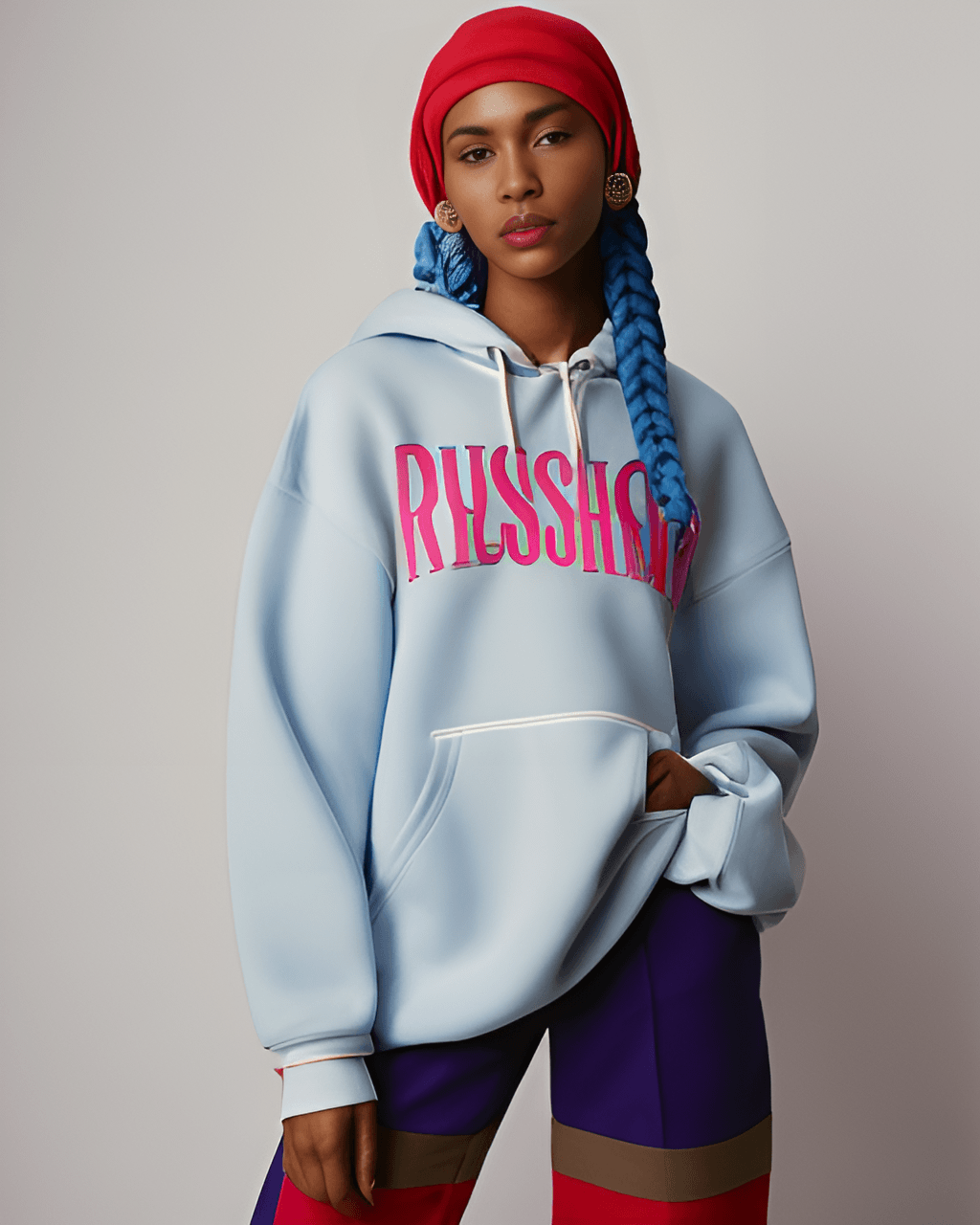 (8k portrait of a perfect symmetrical face hyperrealism portrait of a beautiful white french female with dark blue and pink braided hair wearing high fashion streetwear, a red all over print hoodie with ai synthed russian style checkered prints, striped denim pants, trending on tumblr, 70s style aesthetic, 1978 aesthetic, cold war influence, backstage at a new york fashion week show, photography, captured with a fujifilm xt-3 vintage film, photorealistic, precisionism, intricate, elegant, highly detailed, majestic, digital photography, photography, photorealistic) [dark, cartoon, ugly, gross, fat, oversized, city, fake, not mtv, 3d, disfigured, bad art, deformed, poorly drawn, extra limbs, close up, weird colors, poorly lit, dark colors, black, white, digital art, unrealistic, mountains, nature, hills, park, field, plain background, not racing car, not formula one, not racing track]