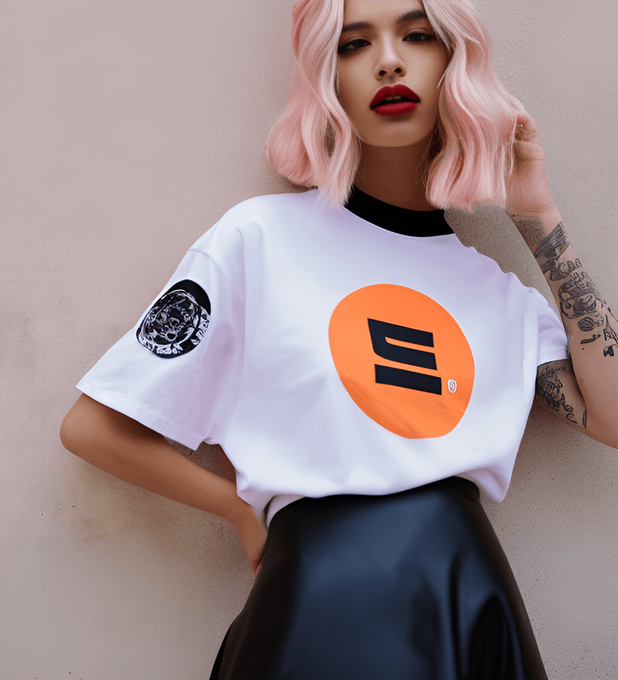 a center front view portrait, 2012, photograph of a beautiful blonde californian female model with blonde hair wearing streetwear, white crop streetwear supreme style t-shirt with a graphic print with orange and red and black text and graphic prints, a black leather mini skirt, black high top sneakers, pink red hair, black lipstick, walking down Manhattan in the 2000s, highly detailed, brooklyn buildings. lowres, cropped, jpeg artifacts, bad anatomy, text error, worst quality, amateur, multiple, gross, weird uneven, disfigured, kitsch, ugly, oversaturated, grain, low-res, Deformed, blurry, bad anatomy, disfigured, poorly drawn face, mutation, mutated, extra limb, ugly, poorly drawn limbs, missing limb, blurry, floating limbs, disconnected limbs, malformed hands, blur, out of focus, long neck, long body, ugly, disgusting, poorly drawn, childish, mutilated, mangled, old, surreal, ugly, tiling, poorly drawn hands, poorly drawn feet, poorly drawn face, out of frame, extra limbs, disfigured, deformed, body out of frame, blurry, bad anatomy, blurred, watermark, grainy, signature, cut off, draft