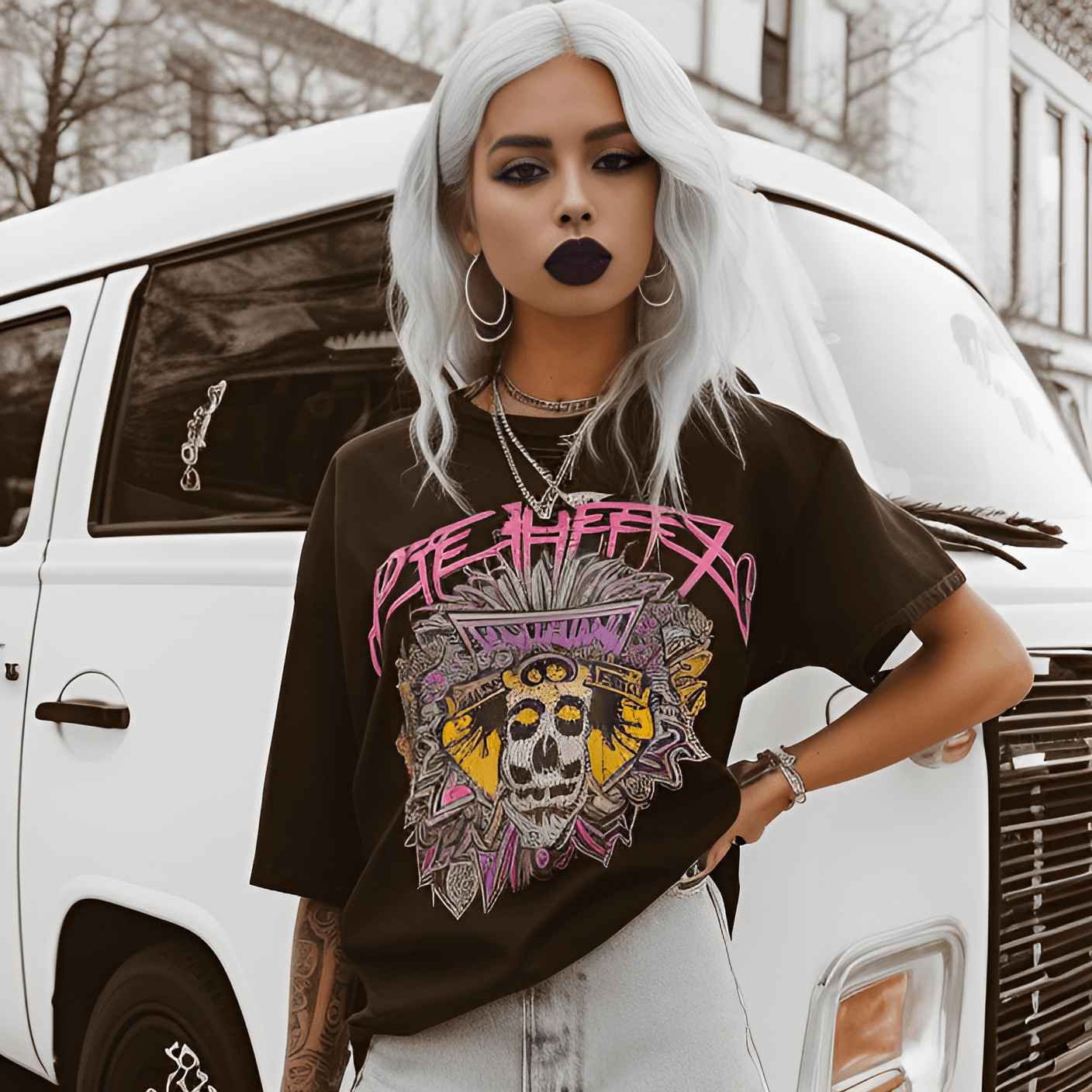 (perfect symmetrical face hyperrealism portrait of a beautiful blonde Female, wearing high fashion streetwear, a gothic mtv style ed hardy cypherpunk gray colorful graphic tee, ripped denim, piercings, (mtv gothic aesthetic, i want my mtv), (90s style aesthetic), new york city in the background, ((photography)), (((captured with a fujifilm xt-3 vintage film))), ((((photorealistic)))), ((precisionism))) [dark, cartoon, ugly, gross, fat, oversized, city, fake, not mtv, 3d, disfigured, bad art, deformed, poorly drawn, extra limbs, close up, weird colors, poorly lit, dark colors, black, white, digital art, unrealistic, mountains, nature, hills, park, field, plain background, not racing car, not formula one, not racing track]
