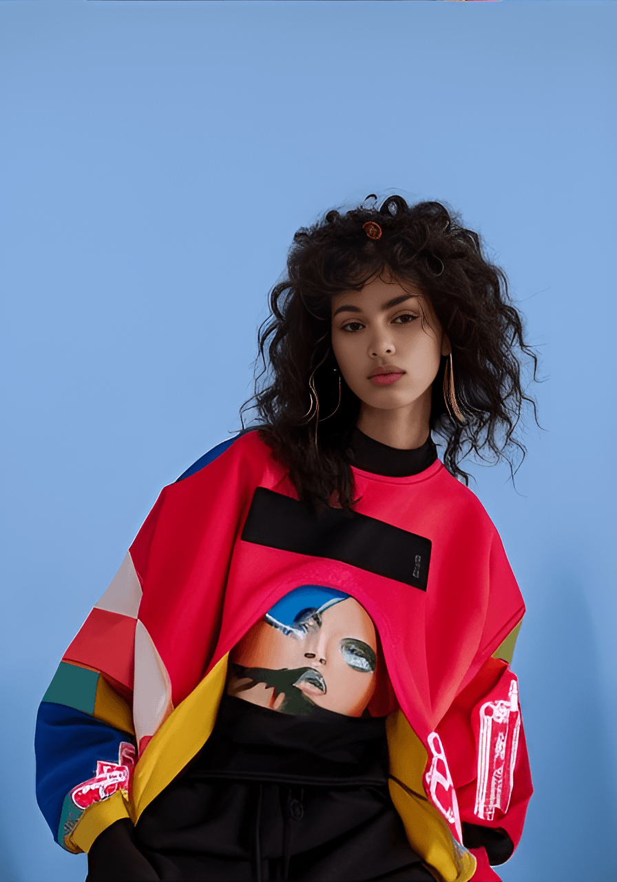 (8k portrait of a perfect symmetrical face hyperrealism portrait of a group of beautiful white eastern european females with dark red ombre hair wearing high fashion streetwear, a tight mini skirt with high visibility stripes, workwear factory oversized bomber jacket with gradient patchwork, detailed side zippers, trending on tumblr, 70s style aesthetic, 1978 aesthetic, cold war influence, backstage at a new york fashion week show, photography, captured with a fujifilm xt-3 vintage film, photorealistic, precisionism, intricate, elegant, highly detailed, majestic, digital photography, photography, photorealistic) [dark, cartoon, ugly, gross, fat, oversized, city, fake, not mtv, 3d, disfigured, bad art, deformed, poorly drawn, extra limbs, close up, weird colors, poorly lit, dark colors, black, white, digital art, unrealistic, mountains, nature, hills, park, field, plain background, not racing car, not formula one, not racing track]