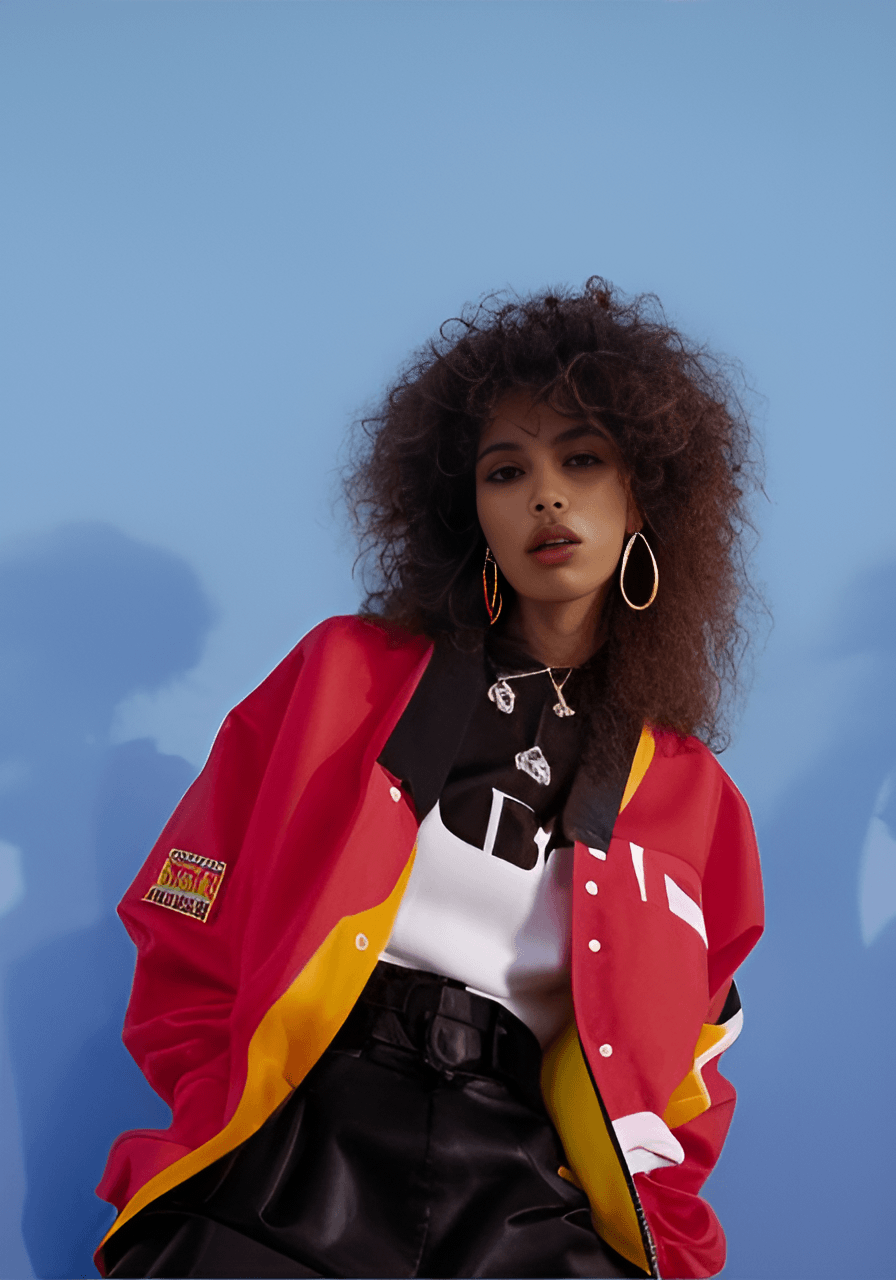 (8k portrait of a perfect symmetrical face hyperrealism portrait of a group of beautiful white eastern european females with dark red ombre hair wearing high fashion streetwear, a tight mini skirt with high visibility stripes, workwear factory oversized bomber jacket with gradient patchwork, detailed side zippers, trending on tumblr, 70s style aesthetic, 1978 aesthetic, cold war influence, backstage at a new york fashion week show, photography, captured with a fujifilm xt-3 vintage film, photorealistic, precisionism, intricate, elegant, highly detailed, majestic, digital photography, photography, photorealistic) [dark, cartoon, ugly, gross, fat, oversized, city, fake, not mtv, 3d, disfigured, bad art, deformed, poorly drawn, extra limbs, close up, weird colors, poorly lit, dark colors, black, white, digital art, unrealistic, mountains, nature, hills, park, field, plain background, not racing car, not formula one, not racing track]