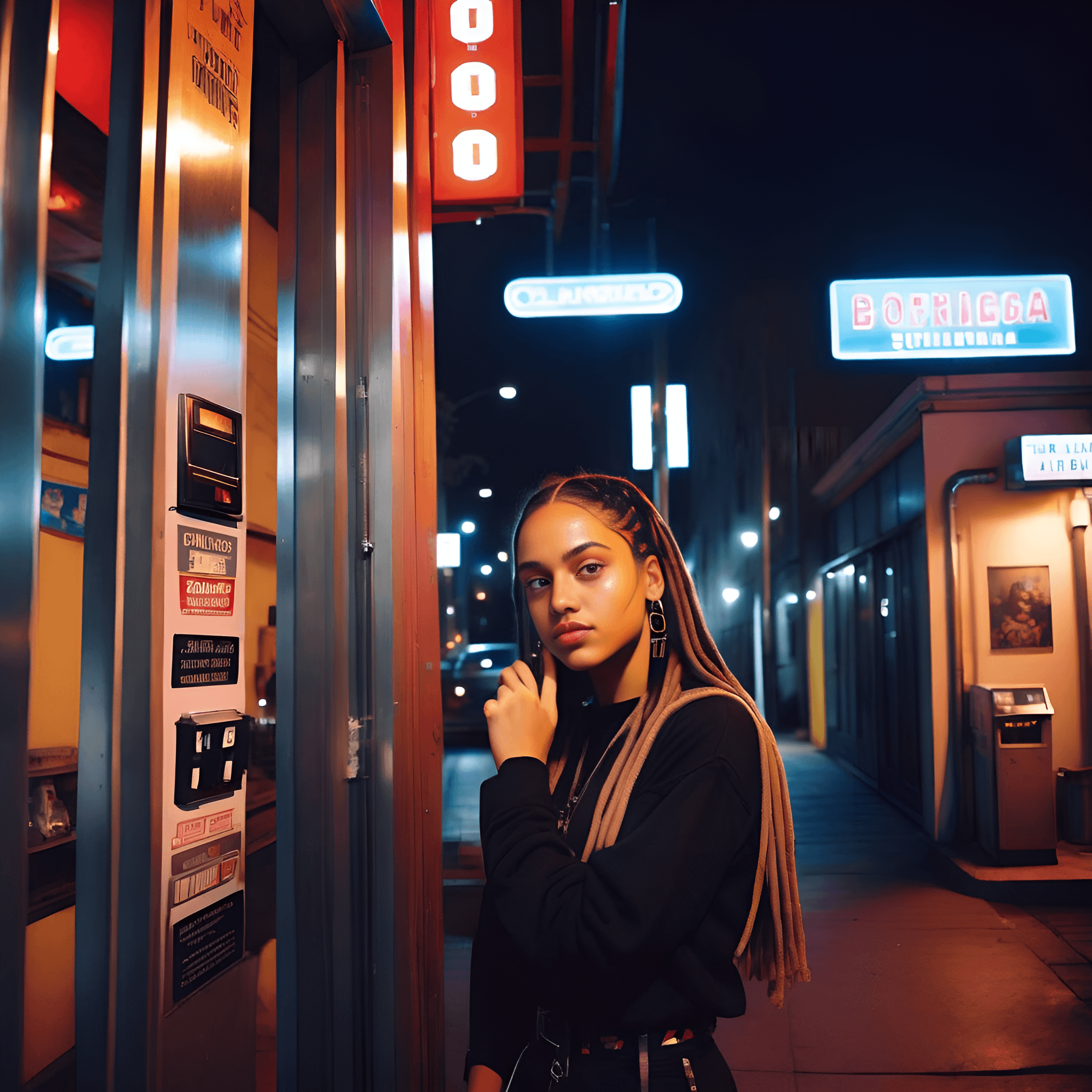 a realistic photograph, girl standing in a factory street alley in new york, sewing machines and the industrial era, synthwave art style, soviet samizdat, cold war era, drawn lines, ( asaf hanuka ), gta artstyle, hyper detailed, street wear, early 1978, Khrushchev, kennedy and the bay of pigs, samizdat passed through the streets, somewhere behind the wall.